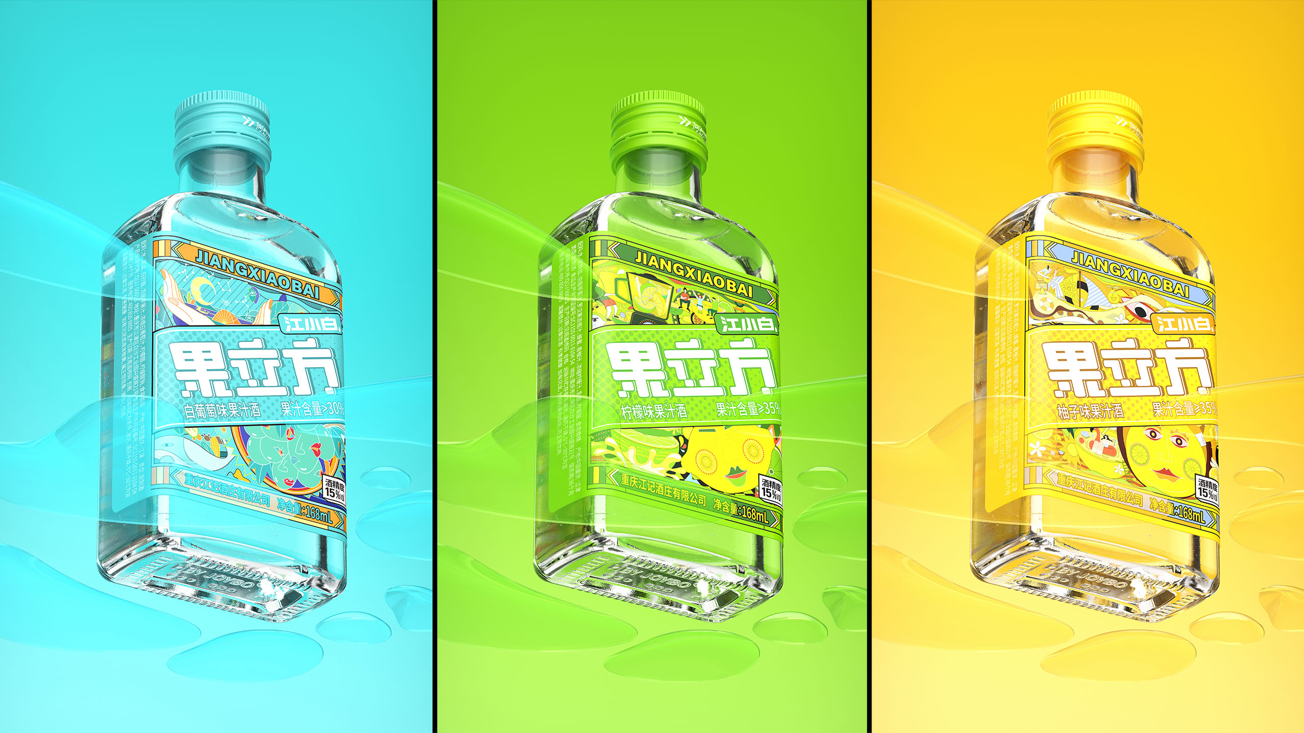 江小白果立方柠檬口味是品牌方今年推出的系列新品,从2020年至今为止,我们先后为客户设计完成了六款产品(蜜桃味、白葡萄味、卡曼橘味、混合口味、柚子味和柠檬味)。四年的时间,在品牌方的努力下,果立方系列产品从无人知晓的新品进化成如今年销售额数亿元的超级黑马,成为同价位段的低度果味酒的超级王者。